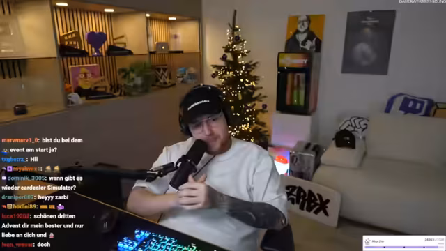 01:13:00Zarbex teilt persönliche Zukunftspläne mit. Er und Schradin planen eine Wohnmobil-Tour durch Deutschland, Österreich und die Schweiz im Februar, um Skifahren zu gehen. Er bittet die Chat-Community um Hilfe bei der Planung und zeigt sich neidisch auf andere Aktivitäten, wie eine Weihnachtsmann-Expedition. Des Weiteren sucht er Unterstützung für seine Inhalte, indem er um Einreichungen für neue Videos bittet.