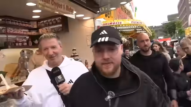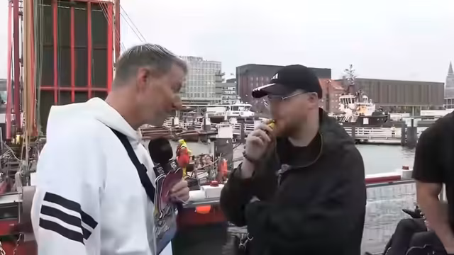01:25:56Die Streamer machen eine Pause und probieren verschiedene lokale Spezialitäten wie Crêpes und Fischbrötchen. Während des Essens werden sie von einem Fernsehteam des NDR angesprochen und geben ein kurzes Interview. Dabei sprechen sie über ihre Arbeit als Streamer und den Einfluss von Twitch auf ihre Karriere. Sie schildern, wie sie sich über den plötzlichen Ruhm in ihrer Heimatstadt Kiel freuen, aber auch die damit verbundenen Herausforderungen wie das ständige Anlaufen von Fans.