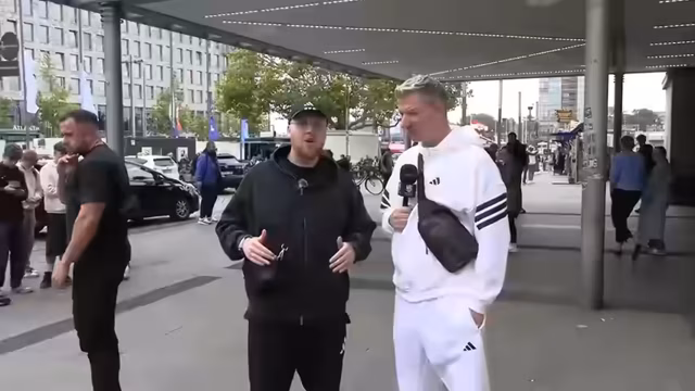01:24:25Nach der Ankunft auf dem Festgelände der Kieler Woche wird die Organisation des Streams besprochen. Es wird erklärt, dass während des Livestreams keine Fotos gemacht werden dürfen, dies aber danach möglich ist. Die Streamer erkunden die Umgebung, stoßen auf Mitarbeiter der Sicherheit und setzen sich auf Liegestühle. Dabei werden verschiedene Essensstände und Attraktionen wie die Bühnen des Festes erwähnt. Die Größe und Vielfalt der Kieler Woche wird als riesiges Stadtfest mit unterschiedlichen Musik-Acts beschrieben, das einen großen Teil des Areals einnimmt.