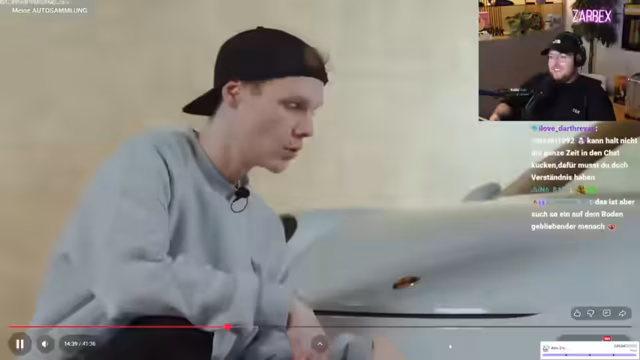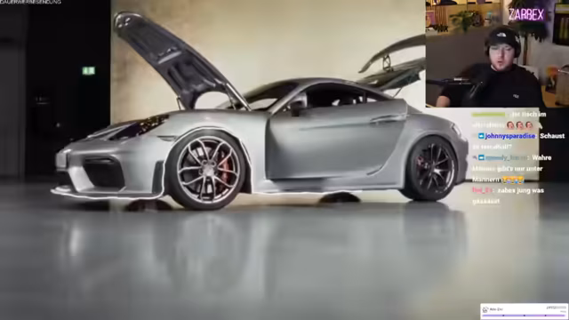 02:54:50Der Streamer beginnt mit der Betrachtung von Saschas Autosammlung, beginnend mit einem Porsche Cayman GT4. Er äußert seine Überraschung über die Größe der Sammlung und diskutiert, ob Autos ein smartes Investment sind. Während er die Ästhetik des GT4 bewundert, merkt er an, dass er persönlich eher zu einem klassischen 911er tendieren würde. Er beschreibt die technischen Details des GT4, wie den Mittelmotor, das Schaltgetriebe und die Semislicks, und teilt persönliche Erfahrungen, wie das Auto oft von seinem Vater gefahren wird. Humorvoll wird auch die Problematik eines Viersitzers als „unbezahlter Taxifahrer“ thematisiert und die Vorteile eines Zweisitzers hervorgehoben, um Ruhe zu haben. Sascha hat den Wagen als drittes Auto gekauft, nach dem Angelcamp, und betont die Wichtigkeit von Steinschlagschutzfolie.