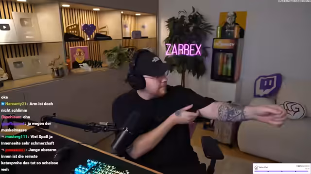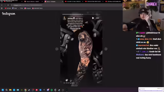 00:09:53Der Stream beginnt mit einer enthusiastischen Begrüßung der Zuschauer und einem Dank für den regen Support. Nach dem anfänglichen Austausch und der Anerkennung der Community-Mitglieder teilt der Streamer eine persönliche Neuigkeit: Er hat ein umfangreiches Tattoo-Cover-Up-Projekt an seinem Arm begonnen. Er beschreibt die siebensündige Session ohne Betäubungscreme als äußerst schmerzhaft, aber das Ergebnis, ein Rabe und ein Bär, die seine Kindheit und Heimat symbolisieren, erfüllt ihn mit Stolz. Er zeigt Fotos des noch verkrusteten Tattoos und erklärt die Bedeutung der einzelnen Elemente, wie das Wappen seines Heimatdorfes und den Bären, der ihn seit seiner Geburt begleitet.