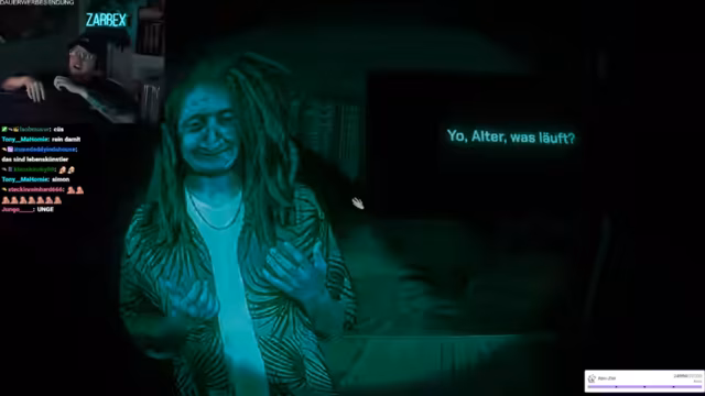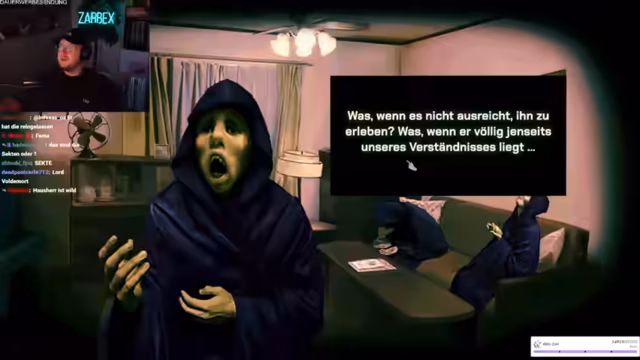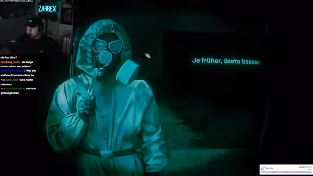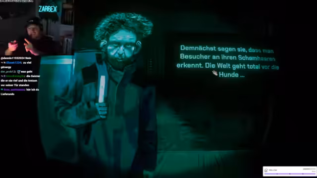 05:37:46Im zweiten Run will der Streamer andere Entscheidungen treffen. Er lässt den Nachbarn herein, der vor den Besuchern warnt und Schutz sucht. Die Nachrichten berichten erneut von einer gewaltigen Energieabgabe der Sonne und den bekannten Bedrohungen. Der Streamer plant, in den nächsten Wochen viel Minecraft zu streamen und auch Koop-Spiele zu zocken, sowie einen 48-Stunden-Stream zu veranstalten. Er lässt eine Esoterik-Olle herein, die er im ersten Run abgewiesen hatte, um zu sehen, was passiert. Sie spricht über Sternzeichen und Mantras, was der Streamer als verrückt empfindet. Er bittet den Chat, nicht zu spoilern, da sich die Rollen der Charaktere in jedem Run ändern können. Der Streamer entdeckt, dass er sich waschen und selbst testen muss, um bestimmte Enden zu vermeiden. Er testet die Esoterik-Olle und entdeckt, dass sie zu viele Zähne hat, was ein Merkmal eines Besuchers ist. Er erschießt sie, was sich als die richtige Entscheidung herausstellt, da sie tatsächlich ein Besucher war.