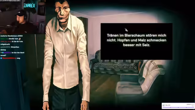 05:14:40Der Streamer lässt einen weiteren verdächtigen Charakter herein, der über Träume und deren Verbindung zu den Besuchern spricht, die sich von Gedanken ernähren. Er erkennt, dass dies ein Problem sein könnte, da er den Überblick über die vielen Leute in seinem Haus verloren hat. Ein ominöser Charakter, der als 'Mr. Krabs' angesprochen wird, warnt vor Veränderungen und höheren Mächten, die Befehle ausführen. Er deutet an, dass zwei Skinwalker im Haus den Streamer in Gefahr bringen würden. Nach einem unbefriedigenden Ende des ersten Runs, bei dem der Streamer von einem vermeintlich vertrauenswürdigen Charakter erschossen wird, weil er sich nicht gewaschen hat und einen Pilz hatte, beschließt er, einen zweiten Run zu starten. Er nimmt sich vor, den Holzfäller-Typen zu beschützen und die Katze ins Haus zu holen, da er eine Verbindung zwischen Hunden und Katzen vermutet. Er plant, andere Entscheidungen zu treffen und ein anderes Ende zu erreichen, einschließlich des Waschens und Selbsttestens, um nicht wieder getötet zu werden.