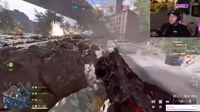 04:01:56Der Spielmodus Rush wird gestartet. Die Streamer analysieren die Map und das Gameplay, wobei die taktische Bedeutung von Positionen und die Notwendigkeit der Teamzusammenarbeit betont werden. Es kommt zu Diskussionen über die Balance des Modus, insbesondere die Präsenz von Panzern, die von als extrem stark beschriebenen Spielern gesteuert werden.