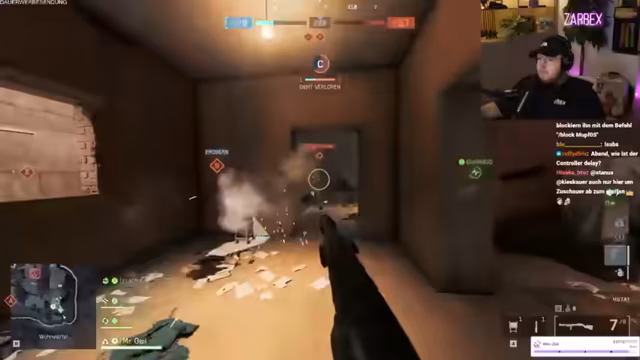 05:56:40Nach einer gewonnenen Runde wird die langsame Waffenentwicklung in Battlefield 6 thematisiert. Es werden Projekte wie ein geplanter Paintball- oder Weihnachtsmarkt-IRL-Stream mit Opa Monte besprochen. Anschließend startet eine neue Runde im Vorherschafts-Modus. Der Streamer kämpft weiter mit seiner Waffe und ist frustriert über das unfaire Matchmaking, das ihn oft gegen PC-Spieler stellt. Es kommt zu Diskussionen über unbalancierte Waffen-Aufsätze wie das Tag Light, das seiner Meinung nach zu große Vorteile bietet.