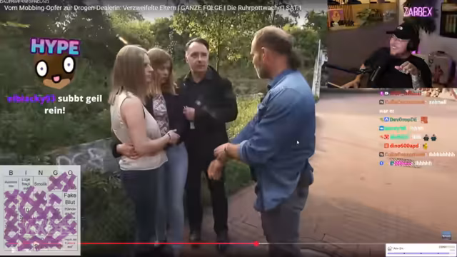 Der Fokus des Streams lag auf der Reaktion auf Dashcam-Videos, die gefährliches Fahrverhalten zeigen. Kommentare dazu brachten hitzige Diskussionen über Verkehrsunfälle hervor. Anschließend wurde mit den Zuschauern eine Folge 'Ruhrpottwache' gespielt. Ein Bingo-Format wurde genutzt, um das Geschehen rund um eine erpresste Drogendealerin und einen Party-Eskalation zu begleiten. In der Krimiserie wurden Polizeieinsätze bis zum Ende verfolgt und der Inhalt als 'Gold-Content' bezeichnet.