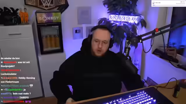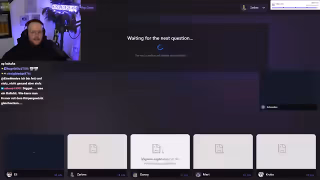 06:41:23Der Stream beginnt mit technischen Vorbereitungen für ein Quiz-Format. Zarbex prüft die Funktionsfähigkeit des Buzzers und wechselt in den Emote-Only-Chat. Er äußert anfängliche Unsicherheit bezüglich seiner Teilnahme, äußert aber dann seine Bereitschaft. Er erklärt die Spielprinzipien: Teilnehmer drücken den Buzzer bei verschwommenen Bildern, um diese schnell zu erraten. Die Punktevergabe funktioniert links ein Punkt, rechts drei Punkte. Der Streamer erwähnt mögliche Rekordversuche, zeigt sich aber auch besorgt über seine mangelnde Leistung im Spiel.