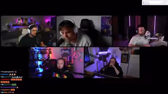05:32:28Die Teilnehmer diskutieren lebhaft über die Größe ihrer Egos und wer von ihnen der beste Gamer sei. Dabei werden verschiedene Streamer als mögliche Kandidaten genannt, während gleichzeitig die Frage im Raum steht, wie ehrlich die Antworten im Discord tatsächlich sind. Es entwickelt sich eine hitzige Debatte über die sogenannte Streamer-Krankheit, bei der jeder ein großes Ego habe. Im Anschluss werden persönliche und provokante Fragen gestellt, darunter ob jemand schon einmal ins Waschbecken gepinkelt oder sich über eine Woche nicht geduscht habe, was zu teils empörten Reaktionen führt.