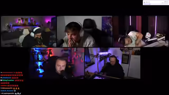 06:45:29Das Bilder-Quiz beginnt mit einigen Fehlstarts und Verwirrungen um Minuspunkte. Das erste Bild zeigt Fabo, der von Goko erkannt wird. Es folgen weitere Bilder, darunter Shrek, Boxhandschuhe und Drake. Die Teilnehmer rätseln über die Bilder und versuchen, so schnell wie möglich zu buzzern. Ein Bild zeigt das Twitch-Logo mit Monte und Basti im Hintergrund, was für Verwirrung sorgt. Es folgen weitere Bilder, darunter Honig, eine Europa-Landkarte und The Rock. Eli erkennt Fari Bang auf einem Bild. Mert erkennt Cherry-Tomaten und unreife Bananen. Ein weiteres Bild zeigt Kollegah und Farid Bang, was zu Kommentaren über deren häufiges Vorkommen führt. Es folgen Bilder von Luciano und Apache. Eli erkennt Marshmallows. Mert führt mit 12 Punkten, gefolgt von Eli mit 7 und Zabex mit 6. Ein Bild zeigt Tyler1, der von GroKo falsch erkannt wird. Es folgen Bilder von Sidney, Äpfeln und Bananen sowie Wielanwälte. Ein Bild zeigt einen Villager in Minecraft, der als Dorfbewohner identifiziert wird. Eli erkennt Fischstäbchen. Das Spiel setzt sich fort mit weiteren Bildern und schnellen Antworten.