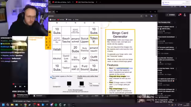 01:18:34Der Streamer startet ein Bingo-Spiel mit der Community, bei dem verschiedene Begriffe wie 'Onlyfans', 'Bauchtasche' oder 'Slut Shaming' genannt werden müssen. Er erzählt von seiner Vorfreude auf die Reaktion auf die Frankfurt-Tinder-Folge von PumpinMonkey und erwähnt, dass er diese Formate unterhaltsam findet, auch wenn sie teilweise provokant sind.
