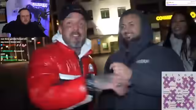 01:24:56Der Streamer reagiert auf die Frankfurt-Tinder-Folge von PumpinMonkey. Er kommentiert verschiedene Teilnehmer, ihre Outfits und ihr Verhalten. Er lacht über einen Teilnehmer, der behauptet, 'Gucci, Bruder' zu sein, obwohl seine Kleidung offensichtlich gefälscht ist. Er unterhält sich auch mit einem anderen Streamer, Mert, und thematisiert die Integration und kulturelle Vielfalt in Deutschland.