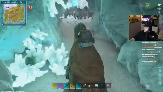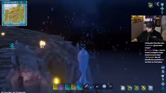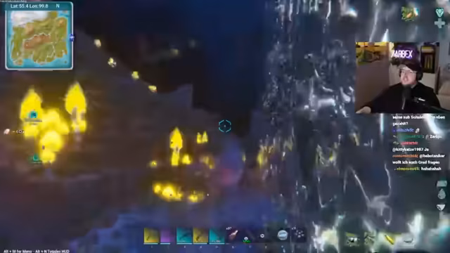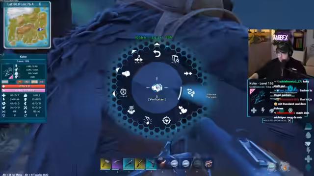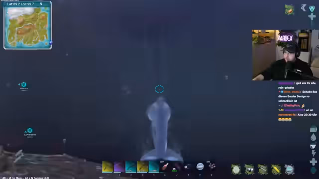 02:04:11Der Streamer wechselt zum Spiel ARK Survival Evolved. Das Hauptziel ist es, die Riesenkrake zu zähmen, um später den Boss 'Brutmutter' zu besiegen. Er erklärt den Tame-Prozess und die benötigten Voraussetzungen wie das Mindestlevel und ein passendes Paarungspartner. Die Suche nach einem starken Exemplar wird als Glückssache beschrieben, da es auf dem Zufallsspawn auf der Map ankommt.