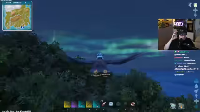 03:54:31Die Vorbereitungen für den geplanten Bosskampf gegen die Riesenkrake laufen auf Hochtouren. Es müssen diverse Rohmaterialien wie Brontosaurus-Werbel, Krokodilhaut und Argentavis-Klauen gesammelt und an den grünen Obelisk gebracht werden. Dabei kommt es zu kleineren organisatorischen Herausforderungen und Missverständnissen über die genaue Anzahl benötigter Materialien. Die Spieler rüsten sich mit Schusswaffen aus und planen, die Megatheriums als Tanks einzusetzen, da sie hohe Lebenspunkte und einen guten Sattel haben.