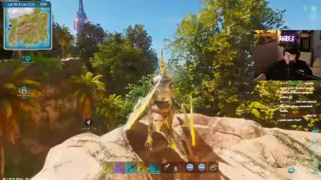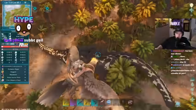 06:03:23Der Stream konzentriert sich intensiv auf das Farming von Luftdrops in ARK Survival Ascended. Das primäre Ziel ist der Erwerb eines seltenen Bauplans für einen Sattel, der für den nächsten Bosskampf unerlässlich ist. Der Streamer legt großen Wert auf Effizienz und meidet langes Verweilen an den Orten. Stattdessen wird proaktiv gejagt, Ressourcen verworfen und weiter zum nächsten Drop geflogen, um Zeit zu sparen. Gleichzeitig wird die Zucht von Dinos wie dem Megatherium als nachrangiges Projekt erwähnt.