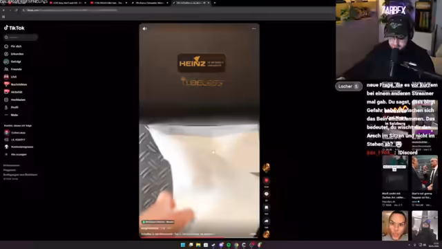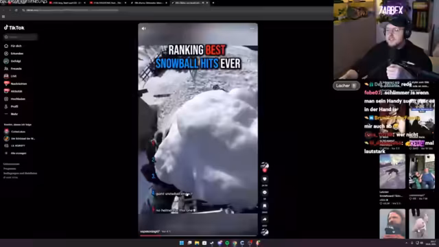 01:42:34Der Streamer kommentiert verschiedene TikTok-Videos und vergleicht sie mit Filmszenen, wie aus Hangover. Er stellt dabei ungewöhnliche oder schockierende Inhalte dar, die teils als Jump-Scares wirken und bei ihm und den Zuschauern für Lacher und Erstaunen sorgen. Die Reaktionen reichen von Verwirrung über Heiterkeit bis zu milden Erschrecken, wobei der Humor oft derbe und unkonventionell ist.