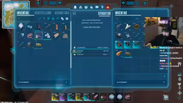 02:52:05Ein Streit um den geklauten Agentavis und der Verlust einer großen Loot-Crate sorgt für erstes Chaos. Streamer Trimax wird beschuldigt, den Vogel gestohlen zu haben, was er vehement bestreitet. Plötzlich wird ein Server-Leck festgestellt, da Dino-Dreck die Performance massiv beeinträchtigt. Die Situation eskaliert, als die Basis von aggressiven Tieren, wie einem Theri, bedroht wird, was sofortige Gegenmaßnahmen erfordert. Die anfängliche Verwirrung über den Verbleib des Vogels weicht der dringenden Notwendigkeit, die Base zu säubern.