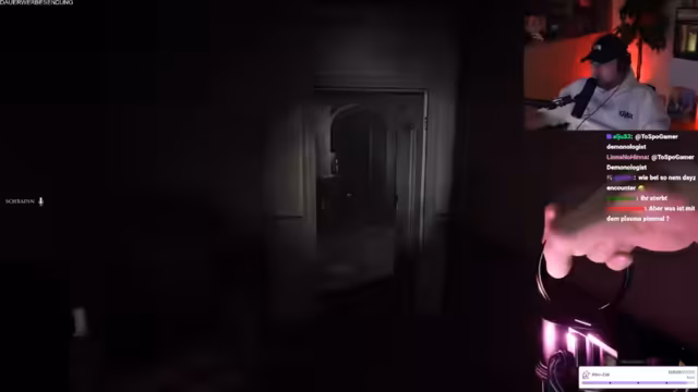 03:54:24Reapers gibt den Tipp, Lichtschalter zu benutzen, aber es besteht die Wahrscheinlichkeit, dass sie kaputt gehen. Er erklärt, dass es auf jeder Map Sachen gibt, die stehen oder geschrieben sind, und man diese vorlesen soll, um im Spiel voranzukommen. Der Streamer liest 'Magna' vor, woraufhin nichts passiert. Ein anderer Spieler liest 'Magna' vor, woraufhin ein Jumpscare ausgelöst wird. Der Streamer hasst Jumpscares, da sie ihm körperliche Schmerzen bereiten. Es wird festgestellt, dass der Geist im Flur ist, da er dort den Stuhl bewegt. Der Streamer geht alleine in den Flur, um mit dem Geist zu kommunizieren. Ein anderer Spieler liest 'Viktoria' vor, woraufhin etwas passiert. Es wird festgestellt, dass man immer vorlesen soll, wenn man etwas Geschriebenes sieht. Der Streamer liest 'Anger' vor, woraufhin ein Geräusch zu hören ist.