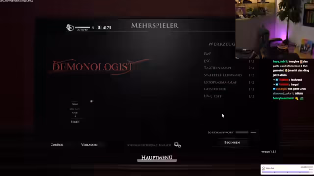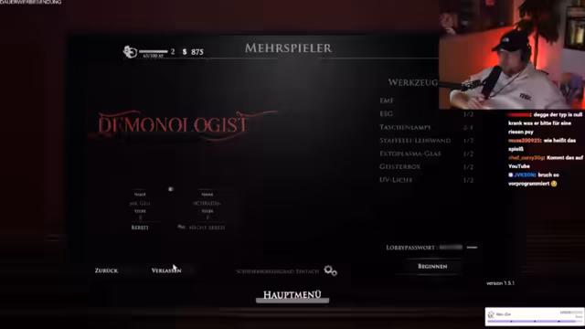 02:52:58Es wird über die Einrichtung des Streaming-Zimmers für ein Horror-Game gesprochen. Der Streamer zeigt seinen neuen Schrank, was zu einer Diskussion führt, warum er seinem Kollegen nicht vorher davon erzählt hat. Es werden Lego-Figuren und ein Bild der beiden Streamer präsentiert, die im Hintergrund platziert werden sollen. Dann wird das Licht im Raum gedimmt, um eine gruseligere Atmosphäre zu schaffen, wobei darauf geachtet wird, dass es nicht zu dunkel wird, damit die Streamer noch erkennbar sind. Es wird überlegt, die Lampen im Hintergrund rot einzufärben, um den Gruselfaktor zu erhöhen. Der Streamer äußert seine Angst vor Jumpscares und erwähnt, dass er das Spiel "Dämonologist" seit Mai 2023 nicht mehr gespielt hat. Er bedauert, dass er kein Tutorial von einem erfahrenen Spieler bekommen konnte und sich nun alleine durch das Spiel kämpfen muss. Es wird angekündigt, dass der Stream 12 Stunden dauern wird und dass später noch "Phasmophobia" gespielt werden soll. Abschließend wird besprochen, wie man im Spiel eine Lobby erstellt und beitritt, um gemeinsam spielen zu können.