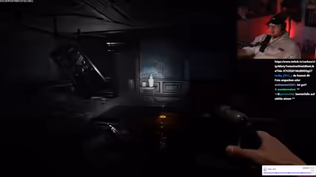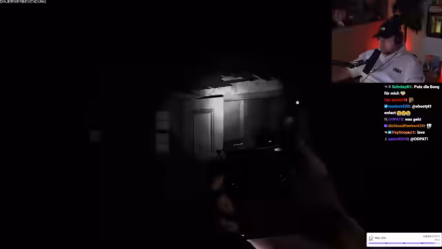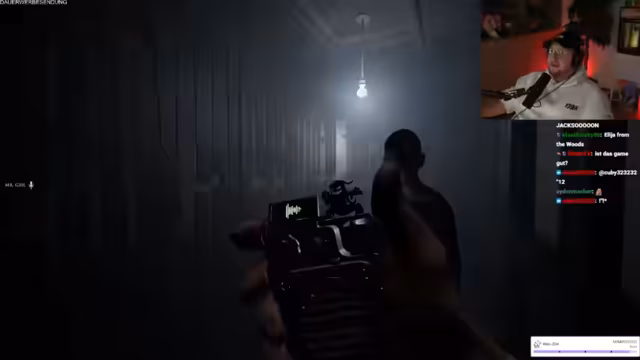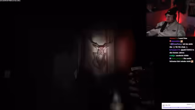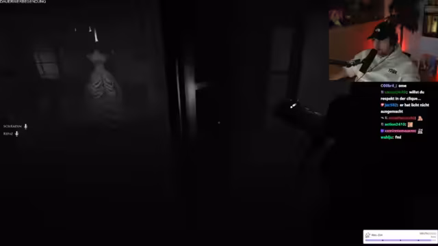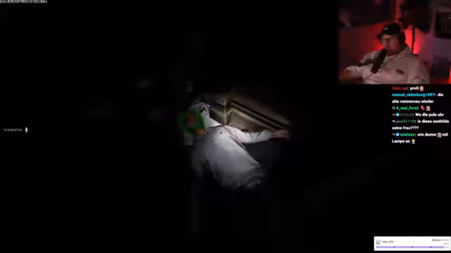 11:00:50Die Streamer setzen ihre Phasmophobia-Session fort, wobei ein Spieler kürzlich gestorben ist und sich überlegt, ob Items ihm helfen können. Es wird spekuliert, dass das Nicht-Treffen des Herzens eines Geistes zu mehr Aktivität führt. Die EMF wird um Mitternacht ausgelöst, was als 'krass' bezeichnet wird. Ein kleines Silhouette über einem Objekt wird als ESG identifiziert, was der Streamer auf YouTube überprüfen möchte. Ein Spieler entdeckt einen 'Wichsfleck', was zur Identifizierung von Ektoplasma führt. Der Fund wird humorvoll kommentiert. Das Team identifiziert Ektoplasma und DSG, wobei ein Spieler den anderen auffordert, es fallen zu lassen, um sicherzugehen. Ein weiterer 'Wichsfleck' wird entdeckt, was zu weiteren humorvollen Kommentaren führt. Der Geist wird als Repass identifiziert, und ein Spieler versucht, mit ihm zu kommunizieren, während der andere den Raum verlässt. Es folgen Versuche, mit dem Geist Chloe Raymond zu kommunizieren, einschließlich bizarrer Anfragen und Behauptungen.