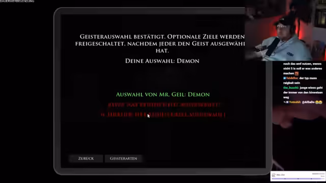 11:45:42Das Team setzt die Geisterjagd fort, wobei ein Spieler den Treppenabgang nicht findet und im Kreis läuft. Schradin verabschiedet sich vom Stream und wird von den anderen verabschiedet. Es wird festgestellt, dass der Geist aus Schradin gefahren ist. Die verbleibenden Spieler versuchen, den Geist zu identifizieren, indem sie Beweise ausschließen. EMF kann's sein, das kann's sein. Okay, es kann nicht ESG sein. Check, dann ESG weg. Alles andere kann's sein. Okay, EMF, Staffel, Ektoplasma, Wichse und Geisterbox. Ein Spieler fragt, ob er EMF oder das Glas nehmen soll, da er noch ein Item nehmen kann. Es wird diskutiert, ob die Geisterbox ausprobiert werden soll, aber als nervig empfunden. Ein Spieler soll an der Tür bleiben, um schnell fliehen zu können. Die Geisterbox wird ausprobiert, aber es gibt keine Antwort. Es wird versucht, mit dem Geist zu kommunizieren, aber es kommt keine Antwort. Ein Spieler stirbt, und das Team aktiviert den Fluchtplan.