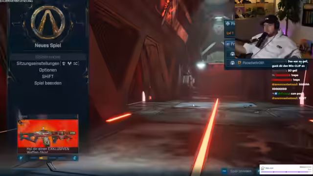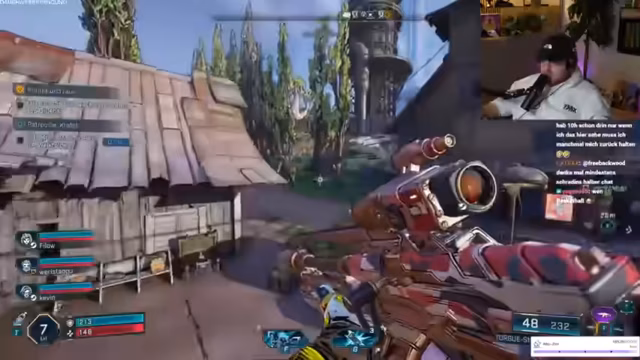 06:27:50Der Streamer erkundet die FOV-Einstellungen und bemerkt, dass der Chat seinen Bildschirm nicht sehen kann. Es wird über Doublejumps und das Erreichen höher gelegener Orte im Spiel gescherzt. Der Streamer tötet bereits Gegner und findet Bargeld. Es wird erklärt, wie man zielt und Kisten öffnet, um an neue Waffen zu gelangen. Ein Mitspieler hat Schwierigkeiten, Belohnungen zu öffnen und Waffen auszurüsten, da sein Level zu gering ist. Der Streamer verliert versehentlich seine Waffe und benötigt die Hilfe der anderen, um sie wiederzufinden. Es wird erklärt, wie man Waffen fallen lässt und Munition findet. Die Kommunikation im Team ist chaotisch, da alle durcheinanderreden. Der Streamer entschuldigt sich für das Chaos und lobt die Community für ihre Hilfe. Trotz des Chaos findet der Streamer eine gute Waffe und ist begeistert.