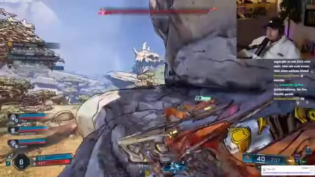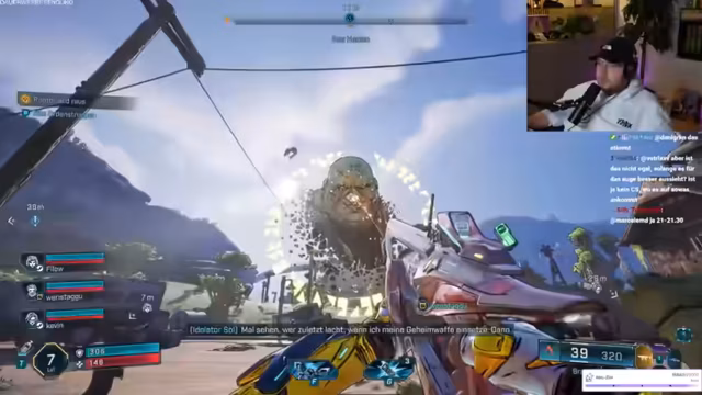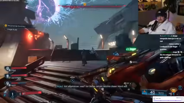 06:42:20Die Gruppe konzentriert sich darauf, Gegner zu besiegen. Ich frage, welches Level ich dafür sein muss, nämlich Level 50. Es gibt Drops, aber das Erreichen von Level 50 wird als langwierig angesehen. Ich bin noch nicht mal Level 2, die anderen sind Level 1. Sie fühlen sich peinlich berührt, so niedrigstufig zu sein. Kevin macht eine Solo-Mission und ist stummgeschaltet. Ich glaube, es wird schwer, Argos Screen einzublenden. Jemand ist fast durch und ist nur Level 28. Die Level 50er Waffe ist also noch in weiter Ferne. Kevin wird gefragt, ob alles in Ordnung ist, da er eine 'Fratze geballert' hat. Ich habe Probleme mit dem AIM, da meine Waffe zu viel Heckmeck macht. Ich sterbe und brauche Hilfe.