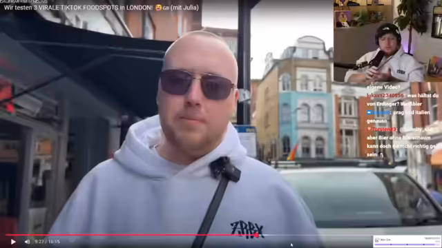 00:57:43Nach dem Dashcam-Video kündigt der Streamer an, ein Foodspot-Video aus London zusammen mit dem Chat anzusehen. Er bittet die Zuschauer, das Video im Hintergrund mitlaufen zu lassen, ein Like dazulassen und einen netten Kommentar zu schreiben, um den Algorithmus zu unterstützen. Der Streamer erwähnt, dass er und Julia überlegen, im Dezember noch einmal für ein Wochenende nach London zu fliegen, um die Warner Brothers Studios in der Weihnachtszeit zu besuchen und die Stadt zur Weihnachtszeit zu genießen. Er teilt den Link zum Video im Chat und bittet die Zuschauer, es parallel laufen zu lassen und Watchtime zu generieren.