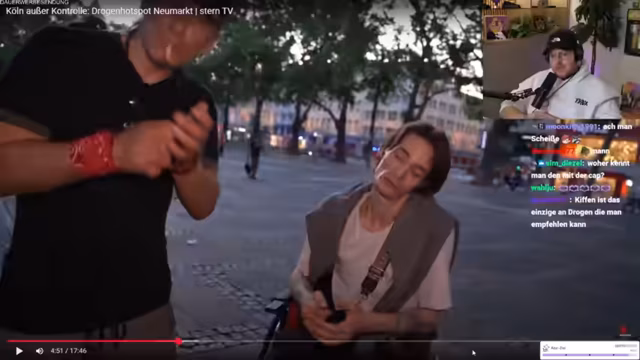 01:54:40Der Streamer schildert seine Eindrücke vom Neumarkt in Köln, einem sozialen Brennpunkt. Er beschreibt, dass die Polizeipräsenz erhöht wurde und Gespräche zwischen Stadt und Anwohnern stattfinden, die Situation der betroffenen Menschen sich aber nicht verbessert hat. Er interviewt einen obdachlosen Mann namens Mike, der seit seiner Kindheit im Heim lebt und dessen Leben von Heroin- und Crack-Sucht bestimmt ist. Mike spricht darüber, dass er aufgrund seiner Schulden keine Wohnung findet und sich eine dauerhafte Unterstützung mit einer Unterkunft wünscht, um eine Perspektive aufbauen zu können. Der Streamer betont, dass Halbherzigkeit bei der Hilfe für Suchtkranke nichts bringt und dass es wichtig ist, Menschen dauerhaft zu unterstützen. Er beobachtet skurrile Szenen, wie einen Mann im Mickey-Mouse-Kostüm, der offenbar auch zur Szene gehört. Ein Dealer gibt Auskunft über den Verkauf von Heroin, um seine eigene Sucht zu finanzieren. Der Streamer äußert die Vermutung, dass ein Leben im Gefängnis unter Umständen angenehmer wäre als das Leben auf der Straße.