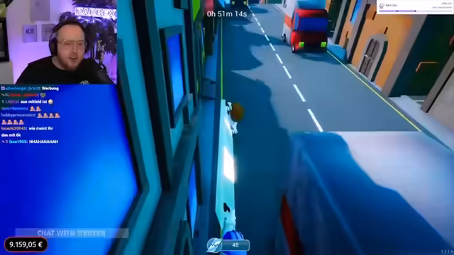 03:35:14Die Spieler stehen vor kniffligen Herausforderungen in einem Spiel, bei dem sie über Container springen und Hindernissen ausweichen müssen. Es kommt zu humorvollen Auseinandersetzungen, bei denen sie sich gegenseitig necken und beleidigen, während sie versuchen, die Aufgaben zu bewältigen. Ein Spieler erzählt von seiner Zeit in der Förderschule und wird daraufhin spielerisch verspottet. Trotz der Schwierigkeiten und der gegenseitigen Sticheleien arbeiten sie zusammen, um die Level zu meistern. Dabei entstehen lustige Wortgefechte und unerwartete Spielzüge, die für Unterhaltung sorgen. Die Interaktion ist geprägt von schnellen Reaktionen und dem Versuch, sich gegenseitig im Spiel zu übertreffen, was zu einer dynamischen und unterhaltsamen Atmosphäre führt. Sie kommentieren ihre Fehler und Erfolge mit viel Humor und Selbstironie, was die Zuschauer amüsiert.