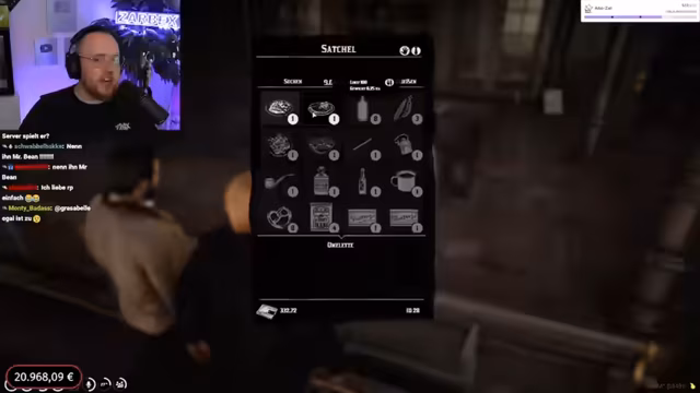 08:08:57Ein Gespräch entspinnt sich über den Konsum von ärztlich verschriebenem Opium und dessen Auswirkungen, während gleichzeitig Pläne für einen Casino-Besuch geschmiedet werden. Der Streamer spricht über seine Spielsucht und die Idee, mit System zu spielen, um das Glücksspiel zu überlisten. Es wird eine Wette vorgeschlagen, bei der es um das Leben eines Pferdes namens Frank geht. Der Streamer und ein anderer Charakter verhandeln über die Bedingungen der Wette, wobei es um Geld und die persönliche Bindung zu dem Tier geht. Die Diskussion driftet ab zu persönlichen Beleidigungen und absurden Vergleichen. Der Streamer äußert seine Abneigung gegen bestimmte Pferderassen und rechtfertigt dies mit praktischen Gründen. Es wird ein Handel vorgeschlagen, bei dem der Streamer ein anderes Pferd besorgen würde, aber der andere Charakter lehnt ab. Die Situation eskaliert, bis der Streamer droht, das Pferd vor den Augen des anderen Charakters hinzurichten. Es wird einigten sich schließlich auf ein Spiel um das Leben des Pferdes, bei dem der Gewinner 500 Dollar erhält.