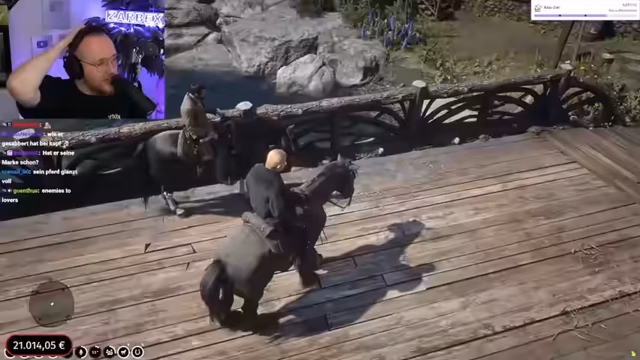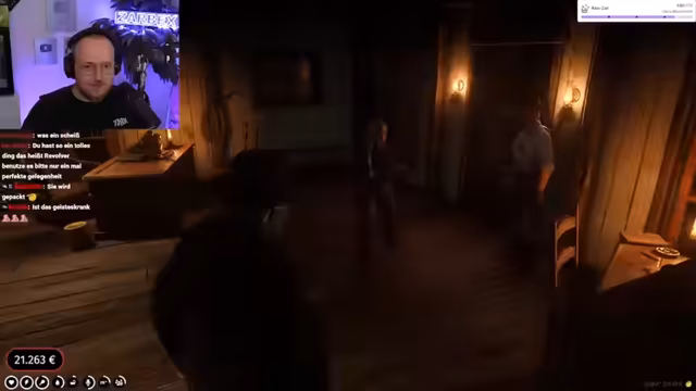 05:13:42Im Rollenspiel taucht der Streamer in verschiedene Charaktere und Dialoge ein. Er trifft auf andere Figuren wie Mr. Cockburn und Senor Valen, wobei humorvolle Konfrontationen und Missverständnisse entstehen. Der Streamer zeigt sich begeistert von dem tiefen und detaillierten Rollenspiel-Erlebnis in der Westernwelt.