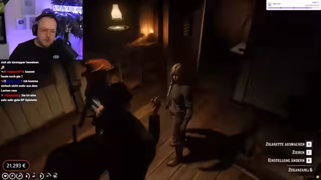 05:15:14Es wird die Begeisterung für das Spiel Red Dead Redemption 2 ausgedrückt und die Hoffnung auf einen dritten Teil geäußert. Der Streamer berichtet von einem schönen Wochenende in einem Etablissement mit guten Drinks und freundlichen Dirnen. Er erwähnt den 'Acqua de Fuego', der nach dem dritten Drink keine Geschmacksnerven mehr übrig lässt. Der Plan ist, nach Blackwater zu reisen, um Mr. Cockburn zu treffen und den Stern abzuholen. Es wird sich für den Begleitschutz bedankt und eine sichere Reise gewünscht. Ein Schreiner aus Tumbleweed leistet Gesellschaft. Der Beruf des Schreiners wird als ehrliches Handwerk gelobt. Der Streamer äußert den Plan, Mr. Cockburn in seinem Büro auf den Sack zu gehen, obwohl er nicht weiß, wo sich das Büro befindet. Es wird erwähnt, dass man in dem Spiel pokern kann und dass dies wichtig sei.