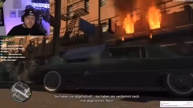 04:10:39Im Spiel steuerte der Streamer sein Charakter durch das fiktive Liberty City, um den Freund Roman aus einer misslichen Lage zu retten. Er interagierte mit verschiedenen Charakteren wie Little Jacob, von dem er Gratiswaffen erhalten kann, und besuchte den exzentrischen Brucie. Die Fahrt durch die Stadt gestaltete sich chaotisch, führte zu Polizeiverfolgungsjagden und Unfällen, was zu humorvollen und frustrierenden Momenten im Stream führte.