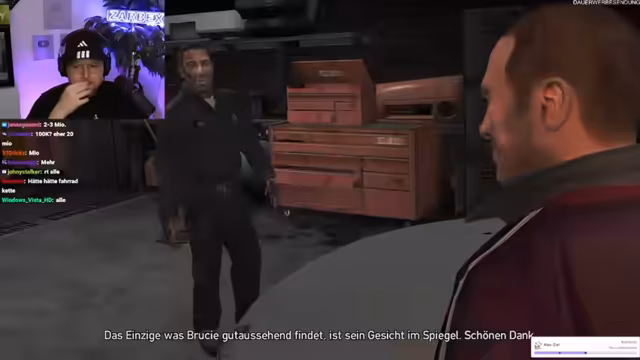 04:27:46Während des Spielverlaufs kommentierte der Streamer die Missionsziele und die Spielmechaniken. Er versuchte, Beziehungen zu den Figuren aufzubauen, um im Spiel Vorteile zu erhalten. Bei einem Treffen mit Brucie, der ihm ein neues Auto übergab, kam es zu einem Unfall, der eine Polizeiverfolgungsjagd auslöste. Der Streamer reagierte zunehmend frustriert auf die chaotischen Abläufe und die Steuerung, wodurch die Stimmung im Stream angespannt und emotional wurde.