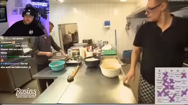 01:37:58Der Streamer schaut eine Folge Rosins Restaurants über die Kurzenburger Mühle. Der Besitzer Norman hat nach dem Verschwinden seines Vorgängers das Restaurant übernommen und führt es mit seinem Team. Er ist Gastronom durch und durch, aber mit der Übernahme konfrontiert er sich mit 20.000 Euro Schulden und einem fehlenden gastronomischen Konzept. Frank Rosin kritisiert die überwiegend dreckige Küche und den Mangel an Struktur.