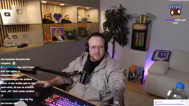00:00:00Der Streamer präsentiert sein frisch eingerichtetes Streamingzimmer, wobei der Fokus auf einem neuen, großen Schrank liegt. Dieser dient nicht nur als Aufbewahrungsort für Technik, sondern vor allem als ehrenvolle Vitrine für alle erworbenen Auszeichnungen wie Stream Awards, den silbernen YouTube Play Button, den WWE-Titel und diverse persönliche Geschenke von Zuschauern. Er betont, dass jedes im Schrank befindliche Objekt eine persönliche Bedeutung und Geschichte für ihn und seine Community hat. Auch das neue, bald installierte 'zarbex'-LED-Schild im lila Design wird angekündigt, um das gesamte Ensemble abzurunden.