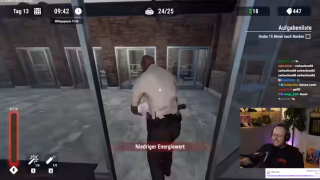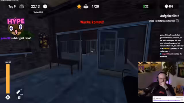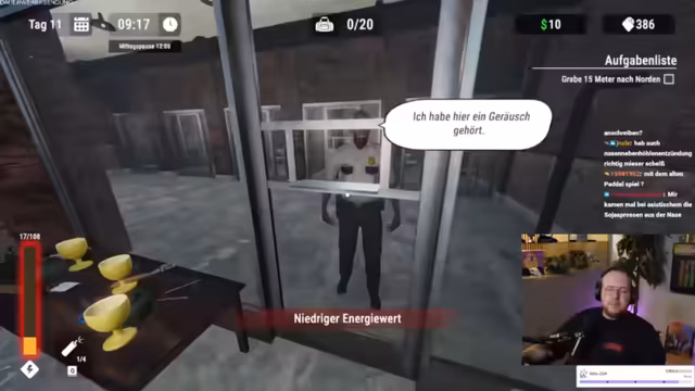 04:39:59Es wird über die aktuelle Strategie im Knast-Simulator gesprochen, inklusive der Frage, ob das Sprengen von Steinen den Countdown des Wächters beeinflusst. Der goldene Pott wurde gefunden und die Bedeutung von Klopapierrollen hervorgehoben, die nicht aufgegeben werden sollen. Es wird über die Vorbereitung auf eine Zombie-Apokalypse im Spiel gesprochen, indem der Kühlschrank mit Items gefüllt wird. Der Fortschritt im Spiel wird gelobt, und die Möglichkeit, das Spiel heute durchzuspielen und aus dem Knast zu entkommen, wird in Betracht gezogen. Es wird überlegt, sich absichtlich erwischen zu lassen, um mehr Klopapierrollen zu farmen und die Zelle komplett zu upgraden. Die Angst vor einem Hard Reset, der alle Fortschritte zunichtemachen würde, wird thematisiert. Es wird erwähnt, dass vor einem solchen Schritt gespeichert werden soll, um die Konsequenzen zu testen. Der Kühlschrank ist gut gefüllt und es können Snacks für die Nachtruhe genutzt werden. Es wird überlegt, ob man sich erwischen lassen soll, um schneller an Upgrades zu kommen, oder ob man versuchen soll, das Spiel ohne Erwischen durchzuspielen.