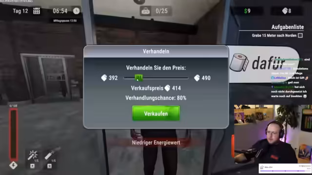 06:49:36Es beginnt mit der Begeisterung über gefundene Items und dem Plan, durch das Freischaufeln von Gängen Profit zu machen. Der Streamer schildert humorvoll die Mühen der Arbeit und die Freude am gefundenen Reichtum. Er teilt seine Begeisterung über das fertiggestellte Streamzimmer und die Vorfreude auf den Zabix LED-Schriftzug. Trotz des eintönigen Grabens entwickelt sich eine fesselnde Dynamik mit den Zuschauern. Es folgt eine Diskussion über die Schwierigkeiten, auf YouTube erfolgreich zu sein, und die Bedeutung des Algorithmus. Der Streamer reflektiert über seine eigenen Erfahrungen mit YouTube und Twitch und betont die stärkere Community-Bindung auf Twitch. Er beantwortet Zuschauerfragen und plant, ein goldenes Idol zu finden und Dynamit für das Sprengen von Steinen zu besorgen. Die beste Schaufel im Spiel wird freigeschaltet, um effizienter graben und looten zu können, mit dem Ziel, noch mehr Kohle zu machen.