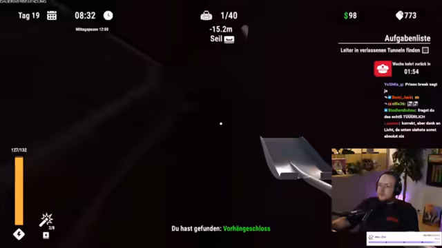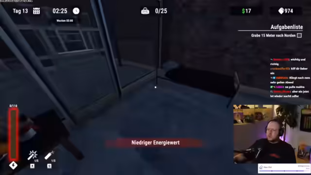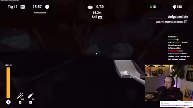 05:53:00Ein schwerwiegender Fehler geschieht, als der Streamer bei der Sub-Lesung erwischt und seine bessere Schaufel verliert. Dies führt zu großer Frustration und Selbstkritik, da er seine eigene Gier als Ursache für den Fehlschlag ansieht. Der Verlust der Schaufel wird als Strafe für seine Dummheit angesehen, was den weiteren Verlauf des Streams und die Fluchtplanung beeinträchtigt, aber nicht stoppt. Der Streamer kündigt an, weiterzugraben und die Nacht zu nutzen, um seine Ressourcen wieder aufzufüllen.