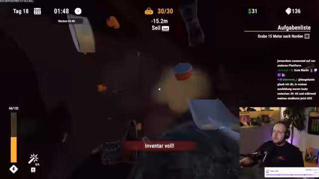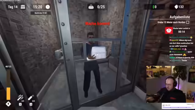 05:53:00Der Streamer ärgert sich über seine Gier, Subs vorgelesen zu haben und erwischt worden zu sein. Er gibt zu, dass es seine eigene Dummheit war und will die ganze Nacht durchgraben, um den Verlust auszugleichen. Er hofft, vierstellig Klopapier zu bekommen und fragt sich, wie man so schlecht spielen kann, obwohl er das Spiel schon seit 10 Stunden spielt. Immerhin hat er seine Schaufel behalten, aber es ist ärgerlich, wieder von vorne anfangen zu müssen. Er gibt zu, dass es die Strafe für seine Gier und Dummheit ist und dass er manchmal sein größter Gegner ist. Trotzdem will er versuchen, heute noch rauszukommen und gräbt weiter wie ein Mann. Er betont, dass man sich im Knast nicht aus der Ruhe bringen lassen darf und dass er alleine auf der Welt ist. Er sieht es positiv, dass er jetzt wieder mehr Items ausgraben und mehr Geld verdienen kann, auch wenn es ärgerlich ist, weil Zeit verloren geht.