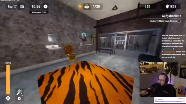 05:59:13Der Streamer glaubt, dass es kein weiteres Level gibt und er das Spiel durchgespielt hat, wenn er das erreicht. Er lässt sich auf dem Hardcore-Level viel Zeit, weil er die Zelle upgraden und Items ausgraben will. Sein Ziel war es, das goldene Klo in den Leopardenteppich zu haben, was er erreicht hat. Er stellt fest, dass das Spielprinzip süchtig macht und er höhere Zuschauerzahlen als bei Just Chatting hat. Er will die Zelle weiter upgraden und überlegt, ob er die Zelle vergrößern soll, um Rabatte zu bekommen. Der Streamer ist stolz auf sich und darauf, was er erreicht hat, besonders wenn seine Eltern stolz auf ihn sind. Er freut sich über eine sturmfreie Bude, da seine Frau und sein Sohn weg sind und er den Stream genießen kann. Er überlegt, Rust mit Tapsi zu spielen und braucht eine bessere Schaufel. Der Streamer hat seine Schaufel verloren, weil er mit ihr in der Hand erwischt wurde und will sich Pflanzen kaufen, um mehr Zeit zum Graben zu haben.