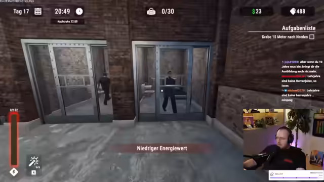 04:44:55Um mehr Ressourcen zu farmen, wird die riskante Strategie erwogen, sich im Spiel bewusst von den Wärtern fassen zu lassen. Dies ist eine Abwägung: Einerseits soll so schneller an Geld und Items gelangen werden, andererseits besteht die Gefahr eines harten Resets, der den Fortschritt zunichtemachen würde. Der Streamer plant, vorher zu speichern, um das Risiko zu minimieren und die Upgrades der Zelle vorantreiben zu können.