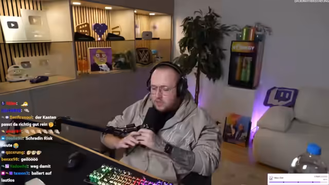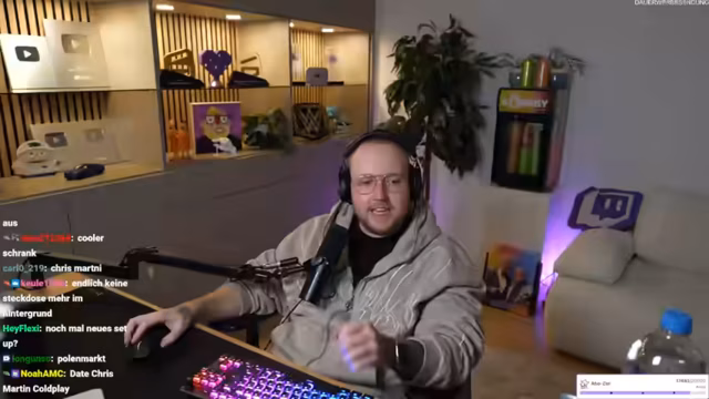 00:00:00Das neue Streamingzimmer ist fertiggestellt und wird dem Chat präsentiert. Der Streamer zeigt sich begeistert von den Reaktionen der Zuschauer auf das neue Setup, das er als etwas Besonderes und Einzigartiges gestalten wollte. Erwähnt werden ein neuer Schrank, der die Stream Awards und andere bedeutungsvolle Gegenstände beherbergt, darunter Video Day Awards, ein silberner YouTube Play Button, Stream Awards, ein WWE-Titel und Lego-Figuren. Der Schrank beinhaltet auch persönliche Gegenstände wie Pokémon-Figuren, ein Sepa-Stofftier, geschenkte Stricksachen, ein 3D-gedrucktes Logo und ein gezeichnetes Bild. Ein Ford Mustang Modellauto symbolisiert seine Motivation, und es gibt auch eine Zaufpark-Cardman-Figur und einen Ford Probe. Der Dementor hat ebenfalls einen Platz gefunden, zusammen mit YouTube-Play-Buttons. Die Beleuchtung des Raumes ist anpassbar, was dem Streamer besonders gefällt. Er bedauert, krank geworden zu sein, freut sich aber über die Fortschritte bei der Einrichtung der Wohnung nach zweieinhalb Monaten in Kartons. Der Streamer betont, wie wichtig es ist, dass das Setup für den Stream cool aussieht und erwähnt, dass in den Schubladen des Schranks Papierkram, Kabel und Powerbanks aufbewahrt werden sollen. Er distanziert sich von der Darstellung anderer Creator bezüglich des Themas Sexspielzeuge und betont seine Normalität und das Spielen von Minecraft ohne Mods.