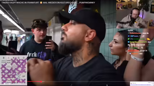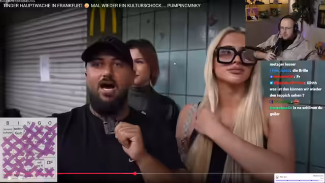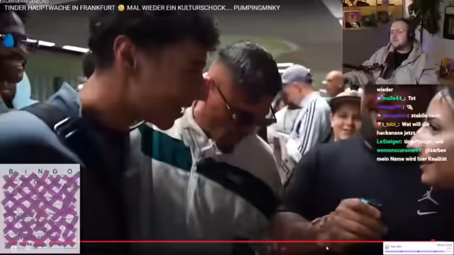 01:35:47Es wird erklärt, was das YouTube-Format Frankfurt Tinder ist. Der Chat wird gefragt, ob er Frankfurt Tinder asozial findet. Es wird erklärt, was Wala Billa bedeutet. ChatGBT klärt auf, dass es aus dem Arabischen kommt und so viel wie Ich schwöre oder bei Gott heißt. Der Streamer bedankt sich für die Aufklärung. Es wird ein Doppelbingo gefeiert. Der Streamer erklärt, dass er auf eine charmante, elegante Art und Weise nicht schreien will. Sammy Miami wird gefragt, ob er Barbie Lesser daten würde. Er antwortet mit Niemals. Schradin ist gebannt. Onkel Mikey soll seinen Joker einlösen. Es wird vermutet, dass Schradin Pornos geguckt hat. Der Streamer ruft Schradin an, um zu klären, was passiert ist.