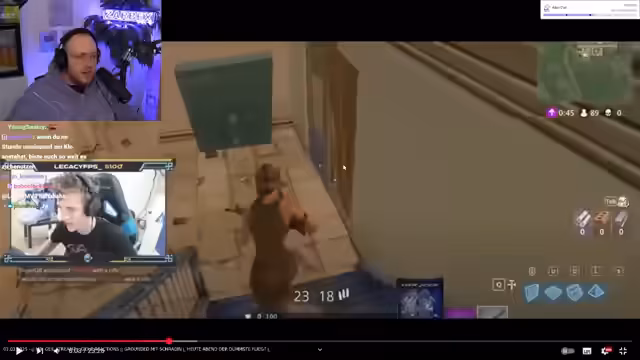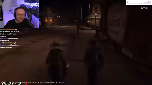 20:07:21Der Streamer konfrontiert den Main-Arzt im Spiel und trotz seines Kampfes stirbt dieser durch die extreme Blutung. Anstatt eine Beschwörung einzusetzen, entscheidet er sich, die Situation anders zu meistern. Er sucht nach Tokens Haus, wird aber von einem Mitspieler mit seinen 'Beziehungsproblemen' unterbrochen, was ihn ungeduldig reagieren lässt. Der Fokus liegt auf der anhaltenden Jagd und der Dynamik der Mission.