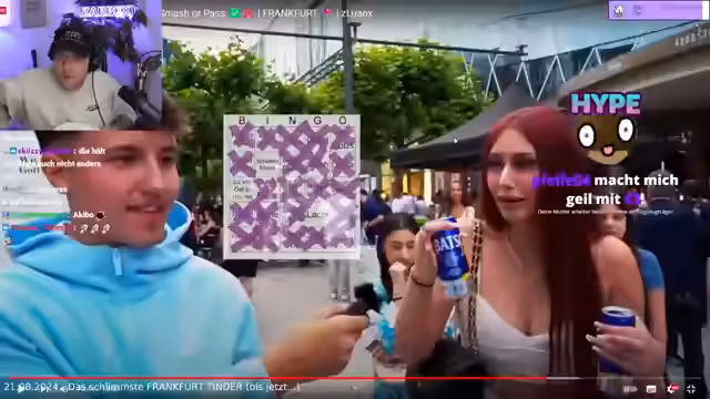 20:49:19Während des Speed-Datings in einer Halle kommt es zu einem Vorfall mit einem überlaufenden Waschbecken. Der Streamer trinkt das auslaufende Wasser und stellt sich später die Frage, ob es sich um normales Wasser oder Kühlflüssigkeit handelt. Der Vorfall führt zu Panik und Verwirrung unter den Teilnehmern.