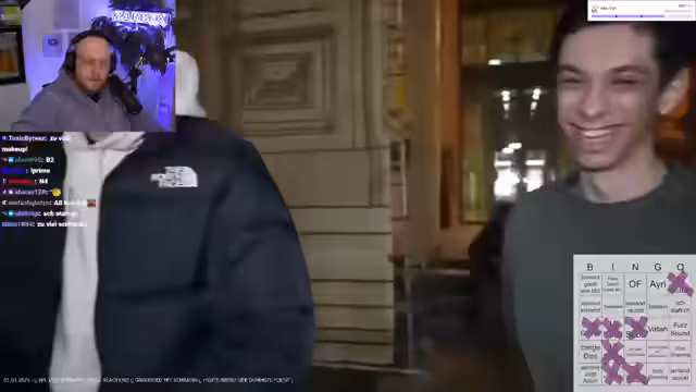 18:03:15Während des Streams kommt es zu technischen Herausforderungen, wie etwa bei der Einbindung einer externen Abstimmungsseite und der Darstellung von Webcam-Inhalten. Der Streamer bittet die Zuschauer um etwas Geduld und erklärt die Notwendigkeit, das System einzurichten. Parallel dazu diskutiert er im Chat mit seinen Freunden über verschiedene Themen, darunter die Landessuffixe von Österreich, den Inhalt von Fischstäbchen und den Namen des ehemaligen TV-Total-Moderators Stefan Raab.