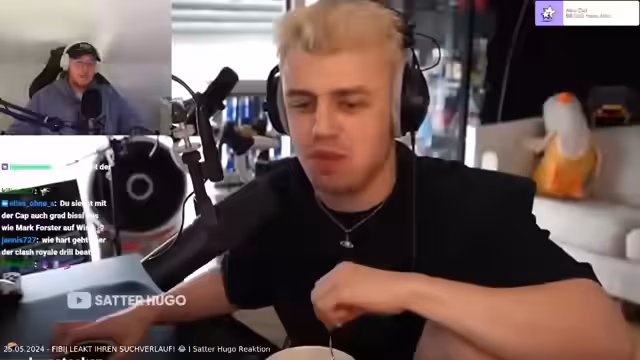 19:17:50Der Streamer erzählt von einer spontanen Segeltour mit einem Freund, auf der er 17 Meter in der Höhe war und Delfine gesichtet hat. Er gibt an, Angst vor Abtreiben und Piraten gehabt zu haben. Gleichzeitig äußert er sich kritisch über den Sänger Mark Forster, den er bisher nicht mochte, nach neuen Informationen aber als cooler empfindet. Es gibt auch eine persönliche Erklärung, warum ein Konzert in Augsburg krankheitsbedingt ausfällt.