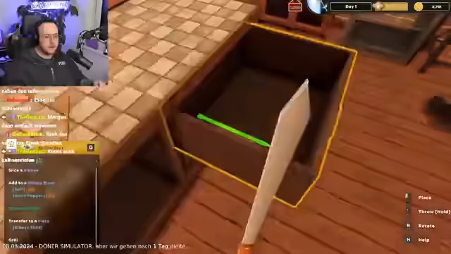 20:25:01Der Streamer und ein Begleiter namens Felix öffnen eine Dönerbude. Es kommt zu zahlreichen technischen Problemen, wie einem schief stehenden Teller, fehlenden Zutaten wie Tomaten und Verwirrung bei der Zubereitung. Der Streamer ist frustriert über Felix' Inkompetenz und das Management des Ladens, was zu finanziellen Schwierigkeiten führt.