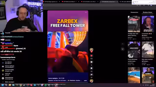 02:06:31Ein Streamer beschreibt seine Erfahrungen im Riesenrad, wobei er seine persönliche Angst vor Höhen und den technischen Mechanismus thematisiert. Er befürchtet, was bei einem Stromausfall passieren könnte, und findet bemerkenswert, dass ein elfjähriger Junge keinerlei Ängste zeigt. Parallel dazu berichtet er von einer anstrengenden Veranstaltung im Hamburger Dom, bei der er und seine Begleitung von einer großen Menge von Fans umgeben und belästigt wurden. Die Situation wurde von Sicherheitskräften kontrolliert, da es unmöglich war, auf alle Wünsche nach Fotos einzugehen, um ein Chaos zu vermeiden.